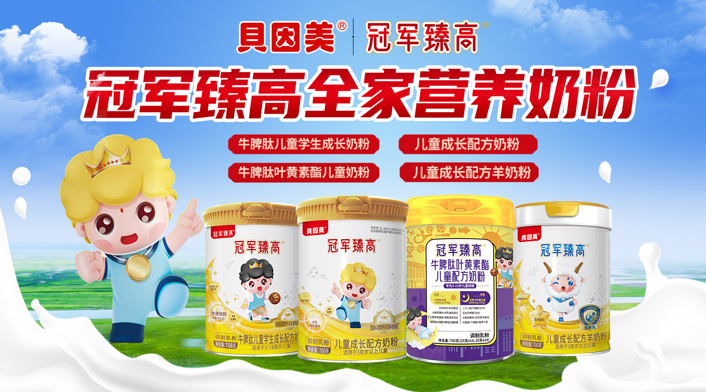 貝因美冠軍臻高兒童奶粉系列涵蓋了兒童成長配方奶粉、兒童成長配方羊奶粉、牛脾肽兒童學生成長配方奶粉以及牛脾肽葉黃素酯兒童配方奶粉等多款,嚴選純凈奶源,安全健康,源頭把控!為成長關(guān)鍵期精心打造,富含多種營養(yǎng)元素,配比科學,營養(yǎng)均衡全面,滴滴醇香,關(guān)愛成長!