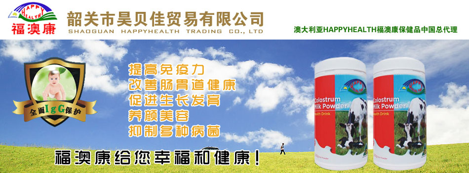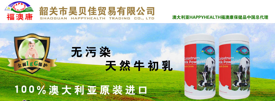 昊貝佳(韶關)貿易有限公司主要從事母嬰食品和營養(yǎng)保健品的進出口貿易,是澳大利亞Auzziehealth產品有限公司著名品牌Happyhealthy“福澳康”在中國的總代理,所有產品都是100%原裝進口,昊貝佳全權負責Happyhealthy“福澳康”純天然健康食品在中國的市場開拓和銷售服務。Auzziehealth產品有限公司是澳大利亞久負盛名的保健產品生產企業(yè)之一,在健康產品原材料的栽培、養(yǎng)殖和研發(fā)、生產等諸多方面,一直處于澳大利亞行業(yè)的領先地位,無論在澳大利亞國內或在海外地區(qū),其產品都有著很大的市場占有率。加上先進的高科技生產設備,其產品不論從原料的栽種或收成,到產品的制造加工包裝,每一個環(huán)節(jié)均符合澳大利亞及國際GMP標準。公司致力于為亞洲市場特別是中國市場研制和開發(fā)適合各年齡階段的乳制品、保健品,所有產品原料全部源自于澳大利亞境內農牧場,牧場位于澳大利亞東南沿海新南威爾市州的貝佳(BEGA)大峽谷,毗鄰維多利亞州,是澳大利亞氣候最溫和、年降雨量最充沛的畜牧業(yè)區(qū),一年四季鮮嫩的綠草飼喂著健壯的牛群。州政府食品管理局定期對牧場進行衛(wèi)生標準測試,保證牧區(qū)的衛(wèi)生狀況絕對符合嚴格的管理要求。
