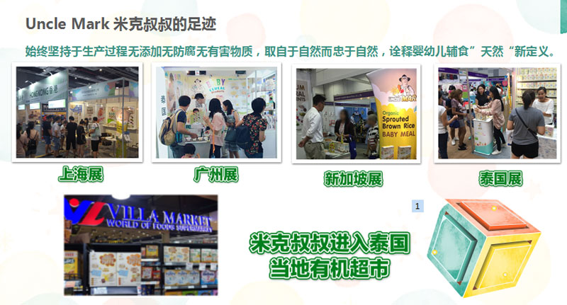 Uncle Mark米克叔叔品牌是鋐美(泰國)工業(yè)股份有限公司旗下產品,公司成立于1988年,是泰國政府批準為BOI(投資促進委員會)全外資食品工廠,獲得多項國際認證和擁有先進技術與設備,專業(yè)生產嬰幼兒輔食、即食粥、即溶谷粉以及健康休閑食品。