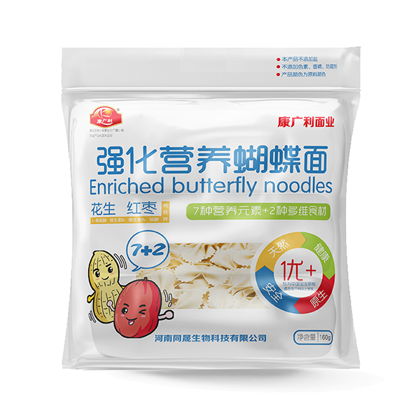 康廣利強(qiáng)化營養(yǎng)蝴蝶面,以優(yōu)質(zhì)面粉為原料,將蔬菜和面進(jìn)行完美結(jié)合,采用先進(jìn)工藝精心加工而成,易煮耐煮。經(jīng)獨(dú)特用心調(diào)制淡淡的雜糧和蔬菜香味進(jìn)入蝴蝶面的嚼勁里,讓寶寶的味蕾開始旅行。細(xì)滑面體,易消化。7種微量元素+2種多維食材,營養(yǎng)豐富。原生,天然,健康,安全。