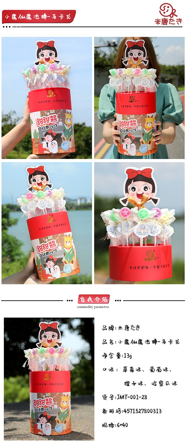 米唐たき品牌,主營(yíng)棒棒糖,旗下有多個(gè)系列產(chǎn)品,如元?dú)饣ɑò舭籼恰L(fēng)車王國(guó)波板糖、貓爪魔法棒棒糖、小魔仙魔法棒棒糖、海洋小分隊(duì)棒棒糖、動(dòng)物派對(duì)棒棒糖、魔法棒棒糖等等。