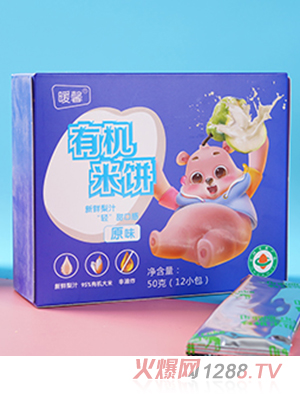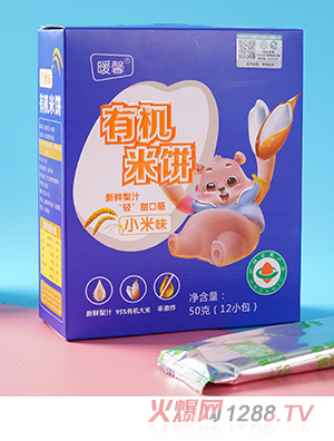 暖馨有機(jī)米餅系列,有水果味、原味、蔬菜味、小米味,共四種口味。以有機(jī)綠色大米為原料,融合新鮮果蔬,口感層次豐富,滋味美妙。