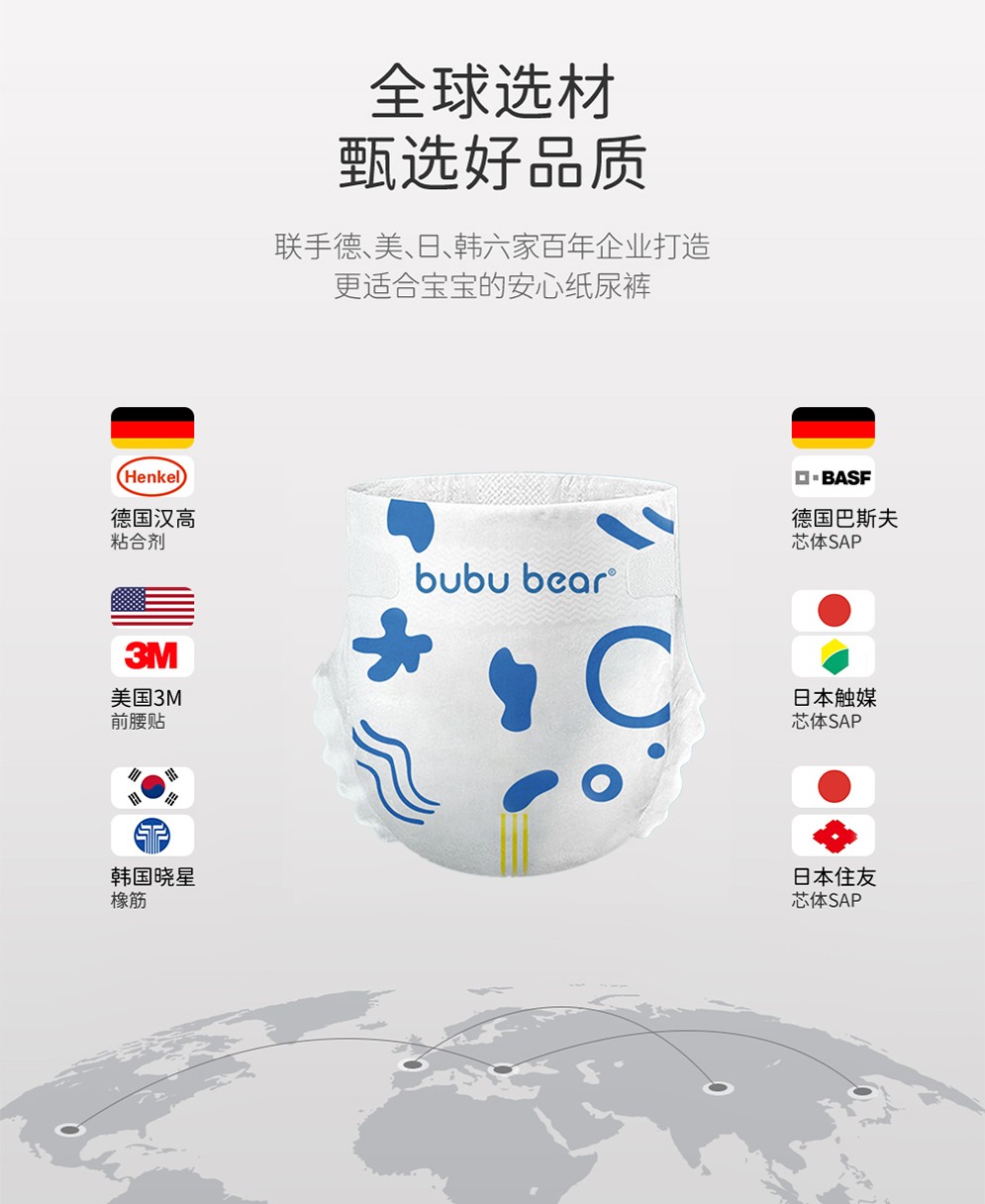 面層直接與寶寶嬌嫩皮膚接觸,熱風(fēng)無紡布具有蓬松、柔軟且較好的親水性等優(yōu)勢,保證面層的液體吸收率高且回滲少,從而達(dá)到液體接觸皮膚表面的時間短、干爽、舒適。