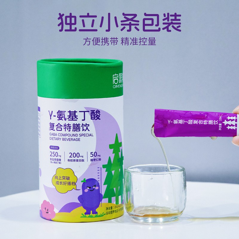 每袋添加Y-氨基丁酸250mg、骨膠原蛋白肽200mg、酸棗仁粉50mg