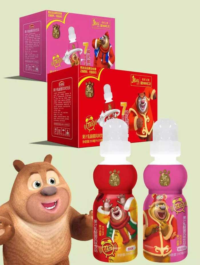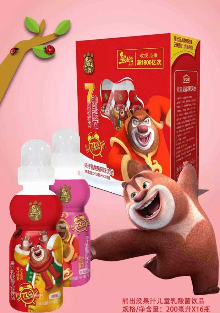品牌名稱:熊出沒 主營產品:熊出沒兒童乳酸菌飲品 品牌特色:7種乳酸菌,舒緩腸胃