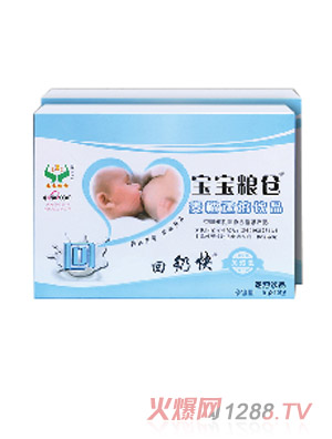 bao--bao糧倉回奶湯:眾多乳房專家共同研制,回奶周期由10-15天縮短為2-3天,其配方消食和中,下氣回乳,含有大量泌乳仰制因子(PIF),可仰制垂體泌乳素(PRL)的分泌,迅速減少泌乳量,縮短斷奶周期,杜絕斷奶周期的乳房充脹、脹痛,乳房腫塊、硬結(jié),并可減輕哺乳后乳房下垂,乳房變形,還產(chǎn)婦一個(gè)優(yōu)美的身段!