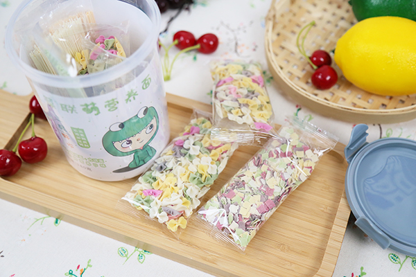 康廣利蔬菜聯(lián)盟營(yíng)養(yǎng)面系列有細(xì)細(xì)面、蝴蝶面、顆粒面、方琪面,四種造型,精選優(yōu)質(zhì)小麥粉為原料,三蒸三醒,無(wú)鹽不添加,品質(zhì)更高,食用更放心。添加菠菜汁、胡蘿卜汁、火龍果汁、南瓜汁、黑米汁、番茄汁等果蔬汁,與小麥粉完美混合出多種營(yíng)養(yǎng)和不同口味。