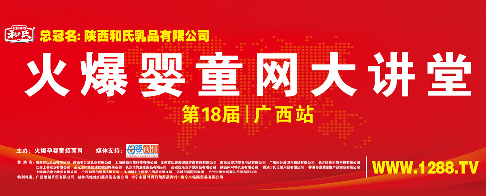2015年6月29日,由火爆嬰童網(wǎng)主辦、陜西和氏乳品有限公司全程冠名的火爆網(wǎng)大講堂第18屆嬰童產(chǎn)品專場訂貨會在南寧金御華尊國際大酒店盛大召開。作為孕嬰童行業(yè)線上線下同步招商第一家,本屆火爆網(wǎng)大講堂吸引了來自全國的19個優(yōu)質(zhì)嬰童品牌商、600余位終端渠道商、丁建老師、王莉老師、田幫林老師等眾行業(yè)精英的傾情參與。