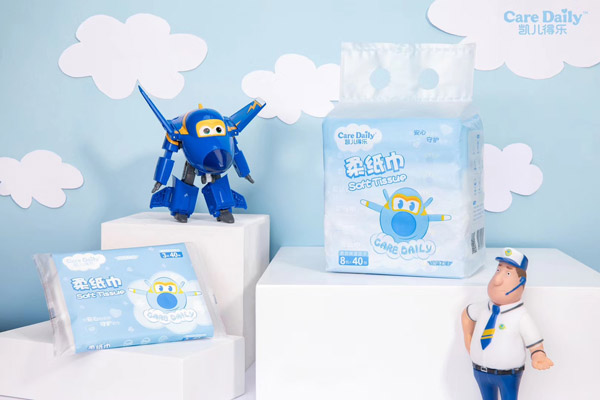 凱兒得樂超級飛俠柔紙巾針對寶寶嬌嫩肌膚,采用適合寶寶肌膚的PH值配方,給寶寶更好的呵護,自然無香,零刺激,無添加任何香精、增白劑、熒光劑等,天生溫柔,助娃為樂,一紙解決育兒煩惱,母嬰及敏感肌適用。