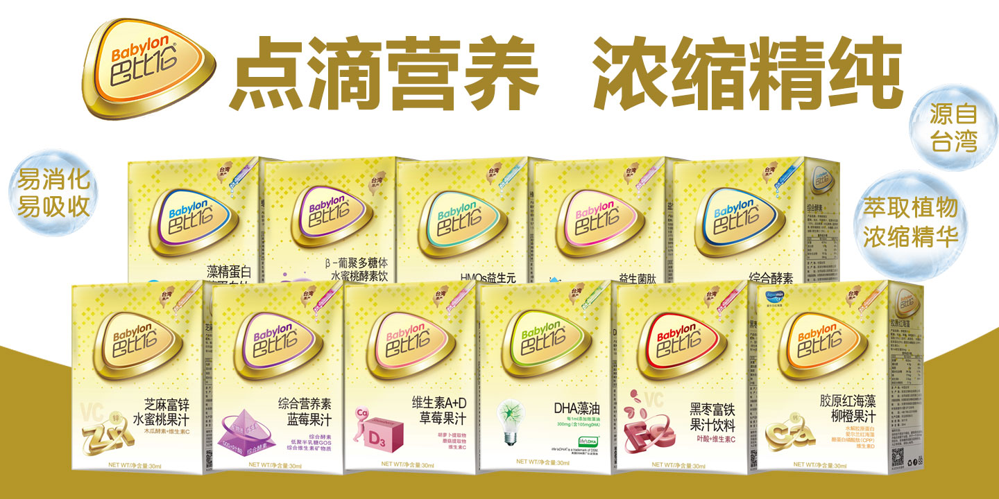 巴比倫是一個繼承古巴比倫創(chuàng)新醫(yī)藥科學精神的實力品牌;選取全球優(yōu)質(zhì)供應商原料,將現(xiàn)代科學生產(chǎn)工藝及中國傳統(tǒng)中醫(yī)藥原理糅合運用,聯(lián)合臺灣中國醫(yī)藥大學、中華中醫(yī)兒科醫(yī)學會、亞洲大學等科研單位,研發(fā)出針對孩子成長中系列問題的功效弄產(chǎn)品,為孩子成長釋放源動力!
