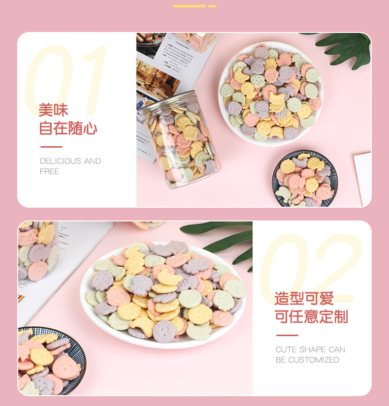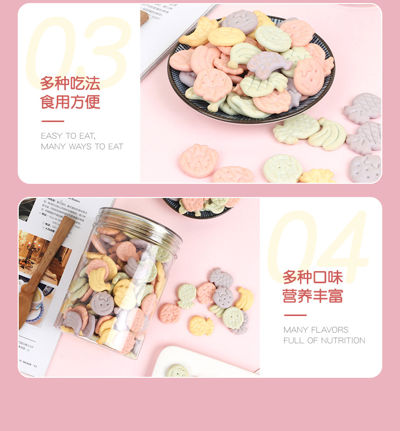 OEM貼牌果蔬餅干500g兒童食品零食造型口味定制源頭工廠代加工產(chǎn)品展示
