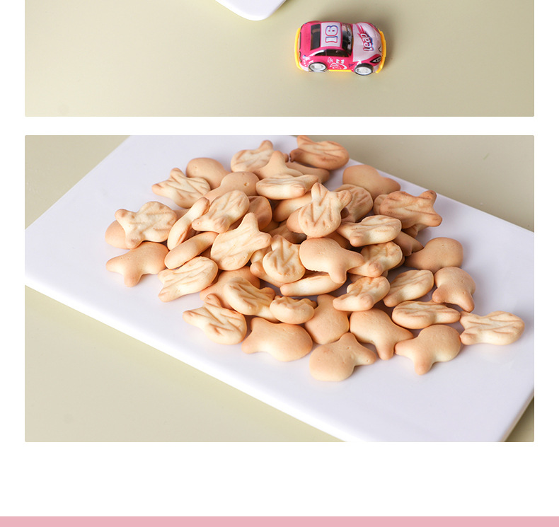 貼牌定制小魚造型餅干500g兒童食品廠家批發(fā)OEM牛奶味韌性餅干產品展示