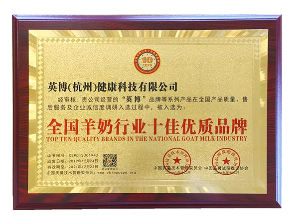 英博羊奶粉憑借產(chǎn)品質(zhì)量,售后服務(wù)和企業(yè)誠信度表現(xiàn)優(yōu)異,被中國質(zhì)量技術(shù)管理委員會(huì)和中國品牌戰(zhàn)略推進(jìn)協(xié)會(huì)入選“全國羊奶行業(yè)十佳優(yōu)質(zhì)品牌”。