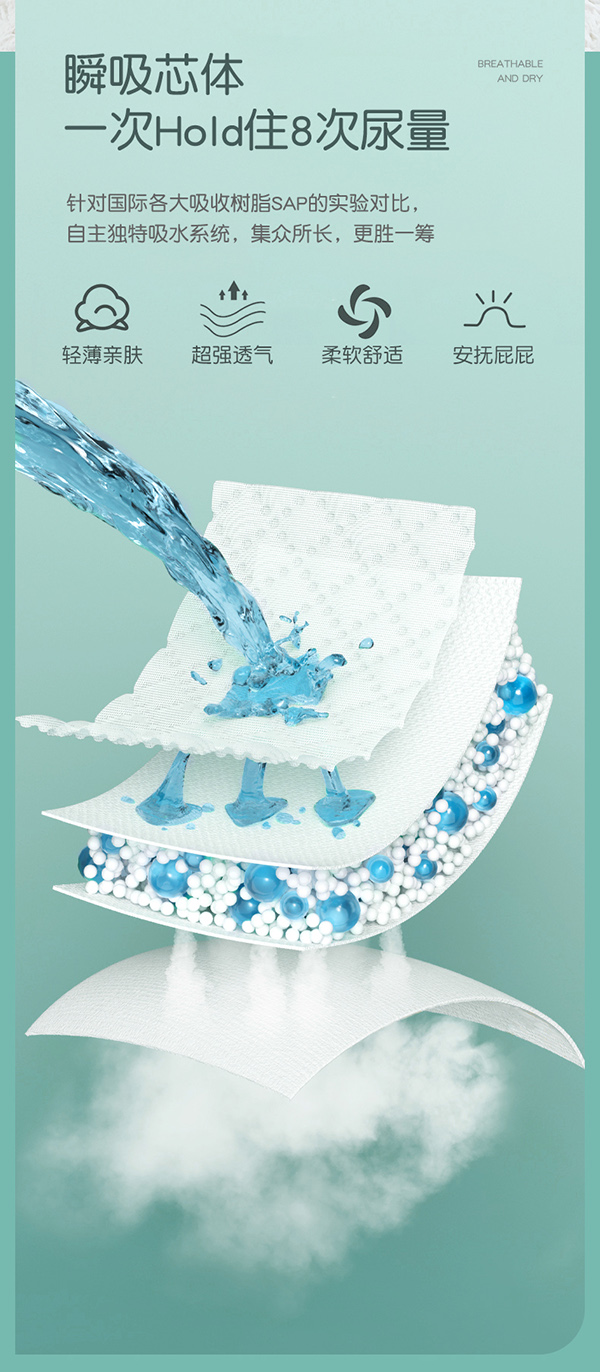 麥卡米卡暢氧超芯體學(xué)步褲,第4代“超芯”,更薄、更快、更干爽、更安全!獨(dú)創(chuàng)芯體U型槽,吸收更快,更大容量;超聲波壓合云朵凸點(diǎn)面層,減少皮膚接觸面,遠(yuǎn)離紅屁股;大環(huán)腰體貼腰圍,防漏不勒紅;立體雙層防漏,護(hù)圍拉伸自動(dòng)外翻設(shè)計(jì),有效防止側(cè)漏;0.1cm超薄芯,一片尿褲反鎖整夜尿量;臺(tái)灣進(jìn)口面層,立體打孔,輕松吸收,迅速把干;醫(yī)護(hù)級(jí)紙尿褲,多國(guó)檢測(cè)認(rèn)證,安全放心。