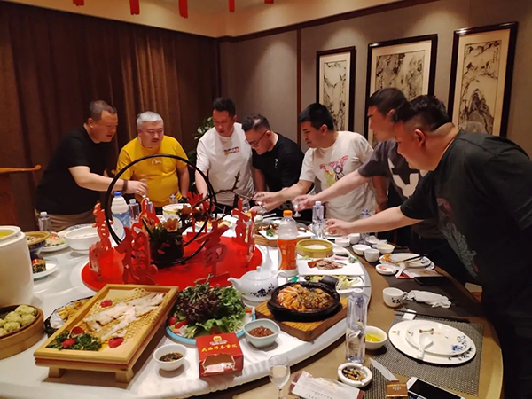 菲瑞營(yíng)銷(xiāo)中心總經(jīng)理及銷(xiāo)售總監(jiān)陪同貴客,在當(dāng)天的“歡迎晚宴”和遠(yuǎn)道而來(lái)的“家人們”一起談未來(lái)、講生活,大家如親人般相談甚歡。