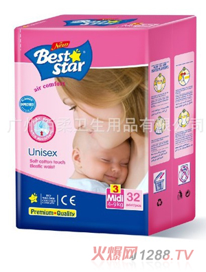 BESTSTAR嬰兒紙尿褲是廣州佰柔衛(wèi)生用品有限公司旗下主打產(chǎn)品,BESTSTAR嬰兒紙尿褲安全舒適,鎖水透氣,是紙尿褲的理想選擇,現(xiàn)在BESTSTAR嬰兒紙尿褲面向全國誠邀加盟,我們將竭誠為您服務,歡迎廣大業(yè)內人士來電來函咨詢洽談。